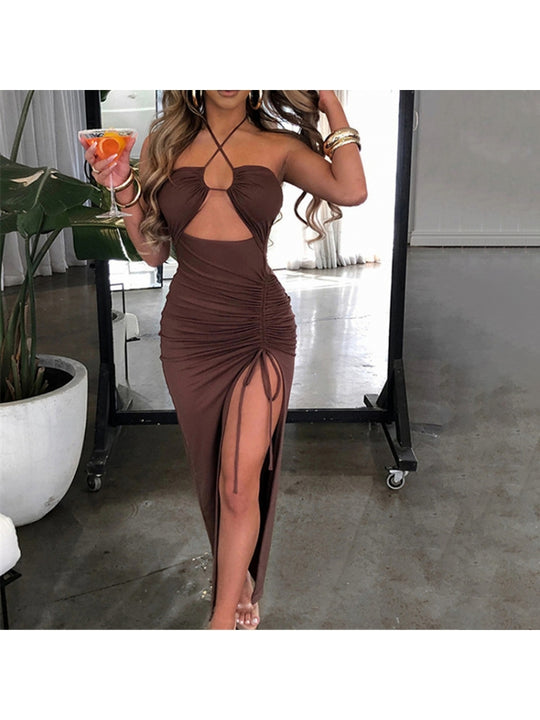Casual Sway Solid Ruched Drawstring Bodycon Dress