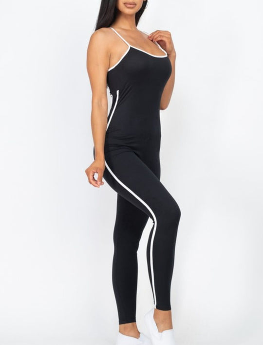 Active Woman Camisole Piping Trim Cut Out Back Jumpsuit