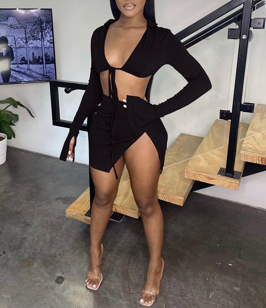 Miss America Solid Coloured Hollowed Out Sexy Club Wear Dresses