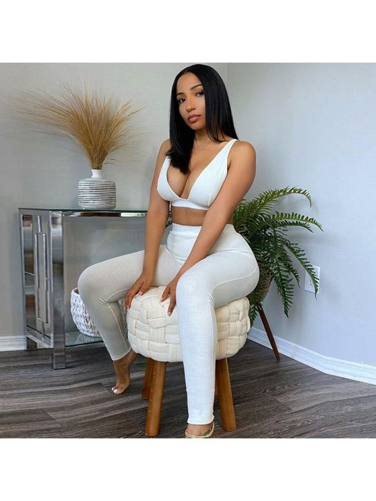 Sexy Cotton V Neck Yoga Tank And Trouser Set