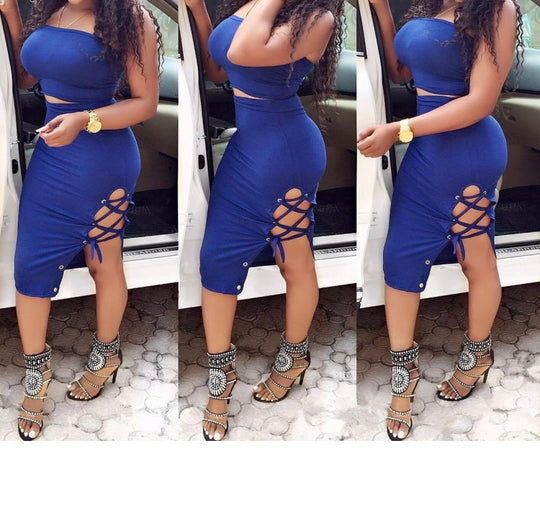 Sexy Crisscross Halter Top & Ruched Mini Skirt Set