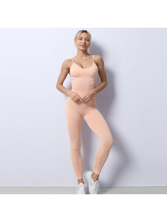 Sleek Halter V Neck Ribbed Body Con Jumpsuit